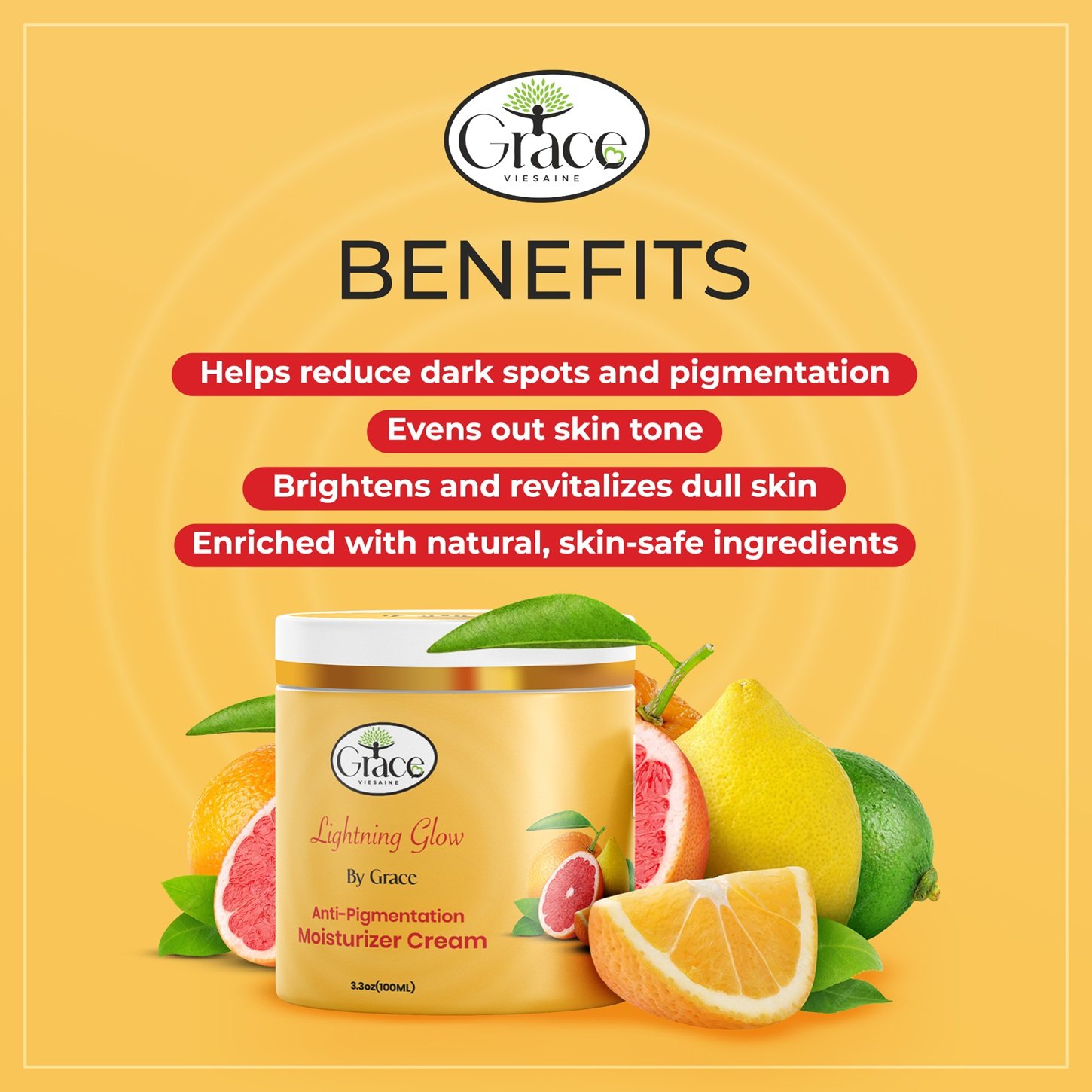 Restore your skin’s natural brilliance with Anti-Pigmentation Cream – Lightning Glow by Grace’s Vie Saine a targeted formula designed to visibly reduce dark spots, uneven tone, and hyperpigmentation.